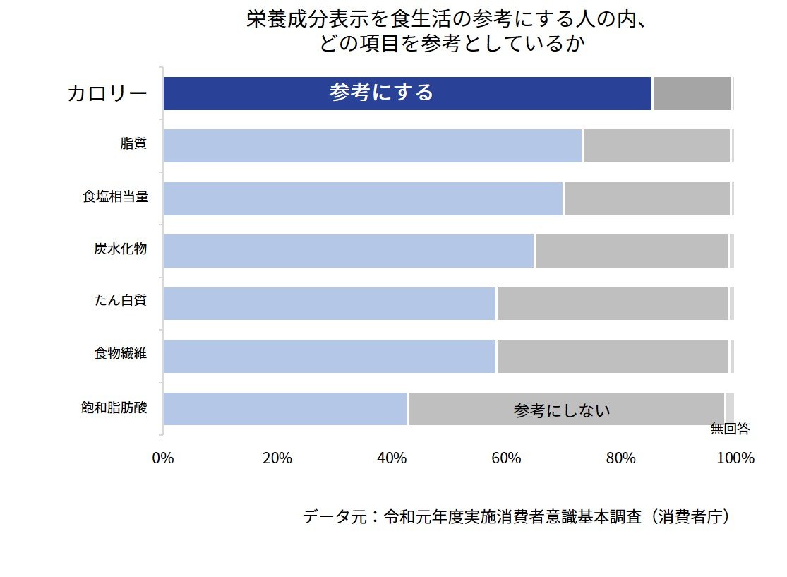 食生活で参考にする栄養成分表示の項目はカロリーが1位
